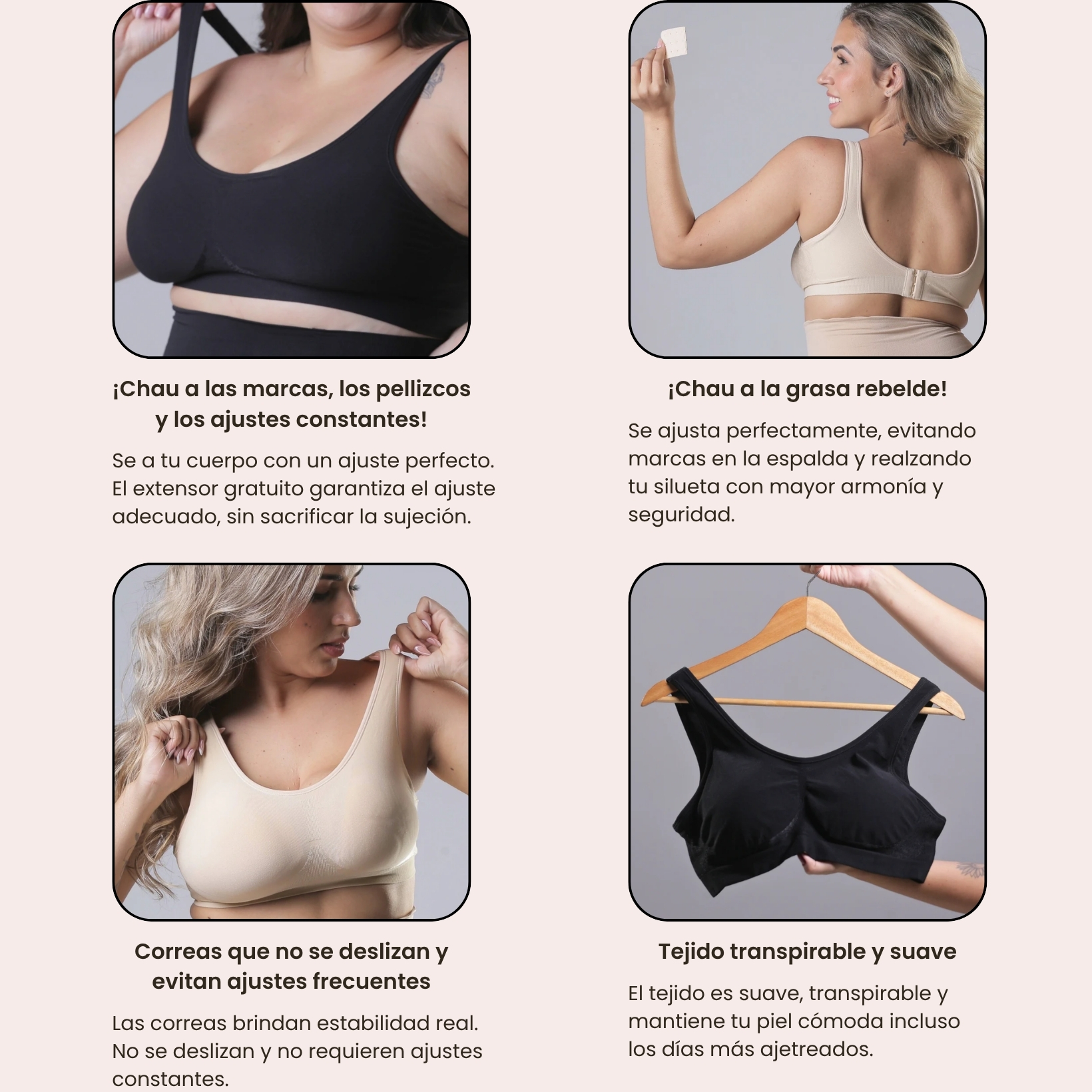 ¿El corpiño marca o deja rollitos en la espalda?